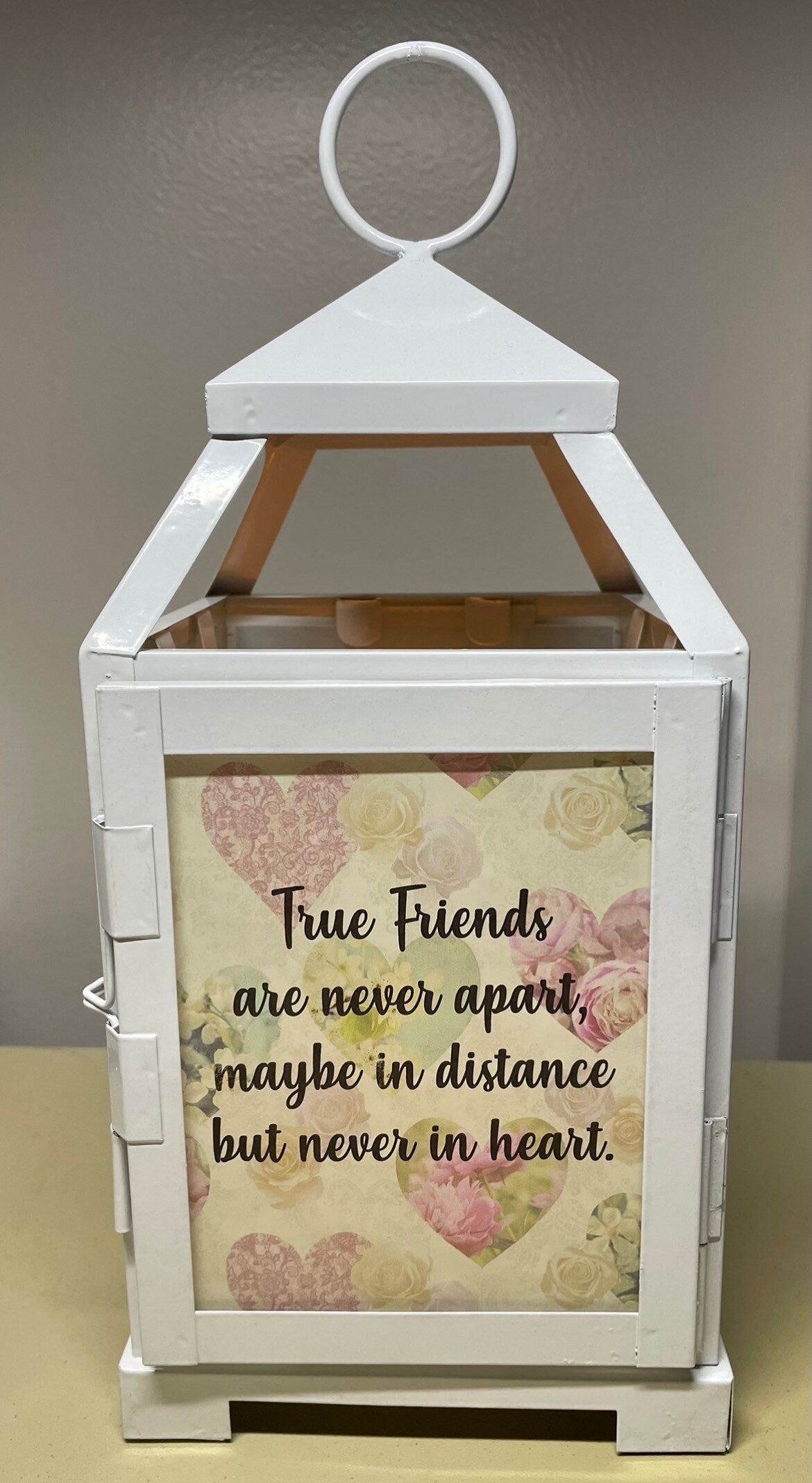 Your photos/custom sayings are used to create these completely personalized metal & glass lanterns. WE ADD THE PHOTOS/SAYINGS FOR YOU! Your lantern comes complete with all four sides customized as you wish! All photos and sayings are printed on high quality translucent film which is permanently applied to the glass.
