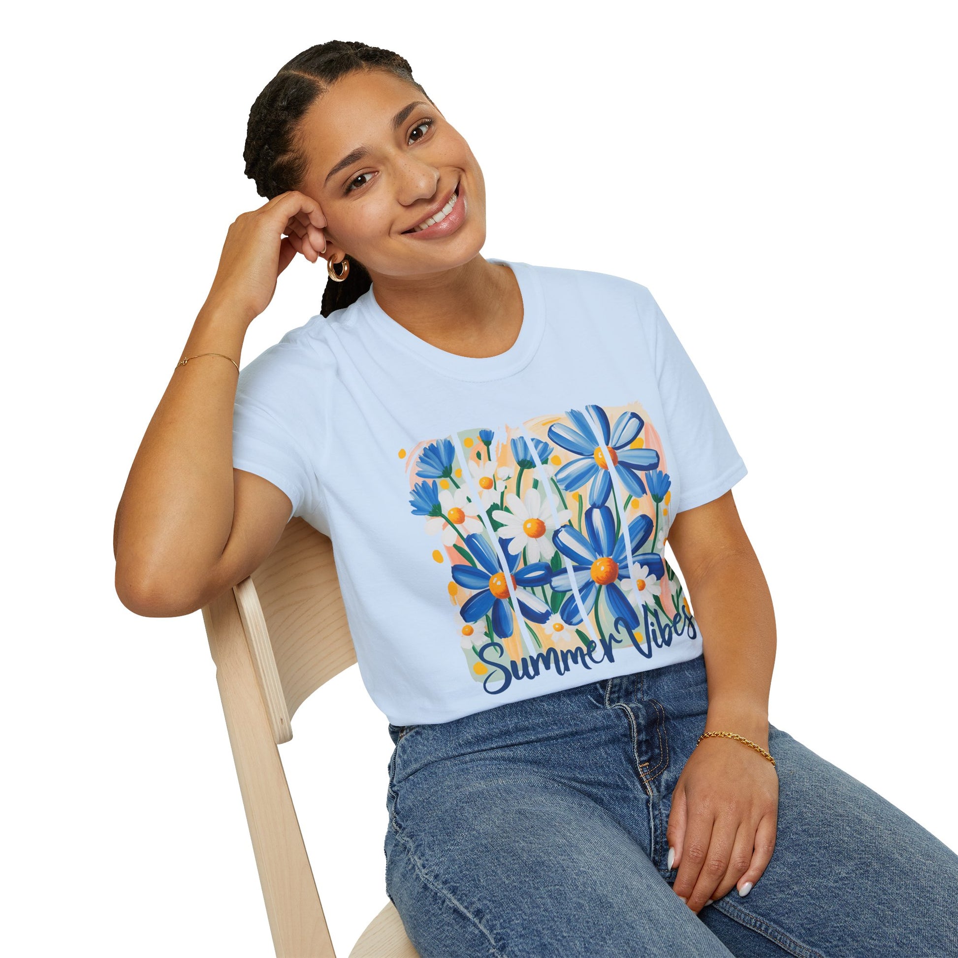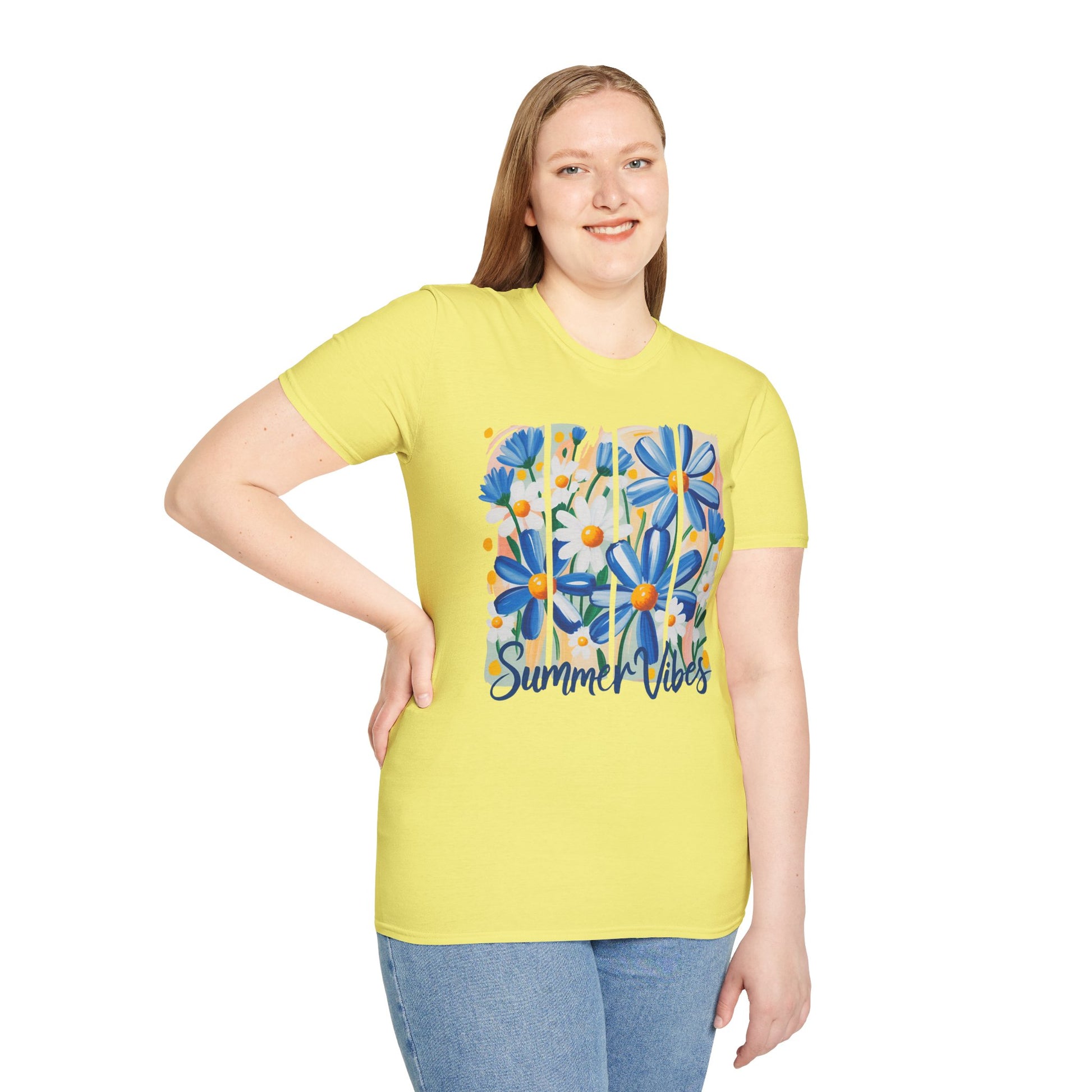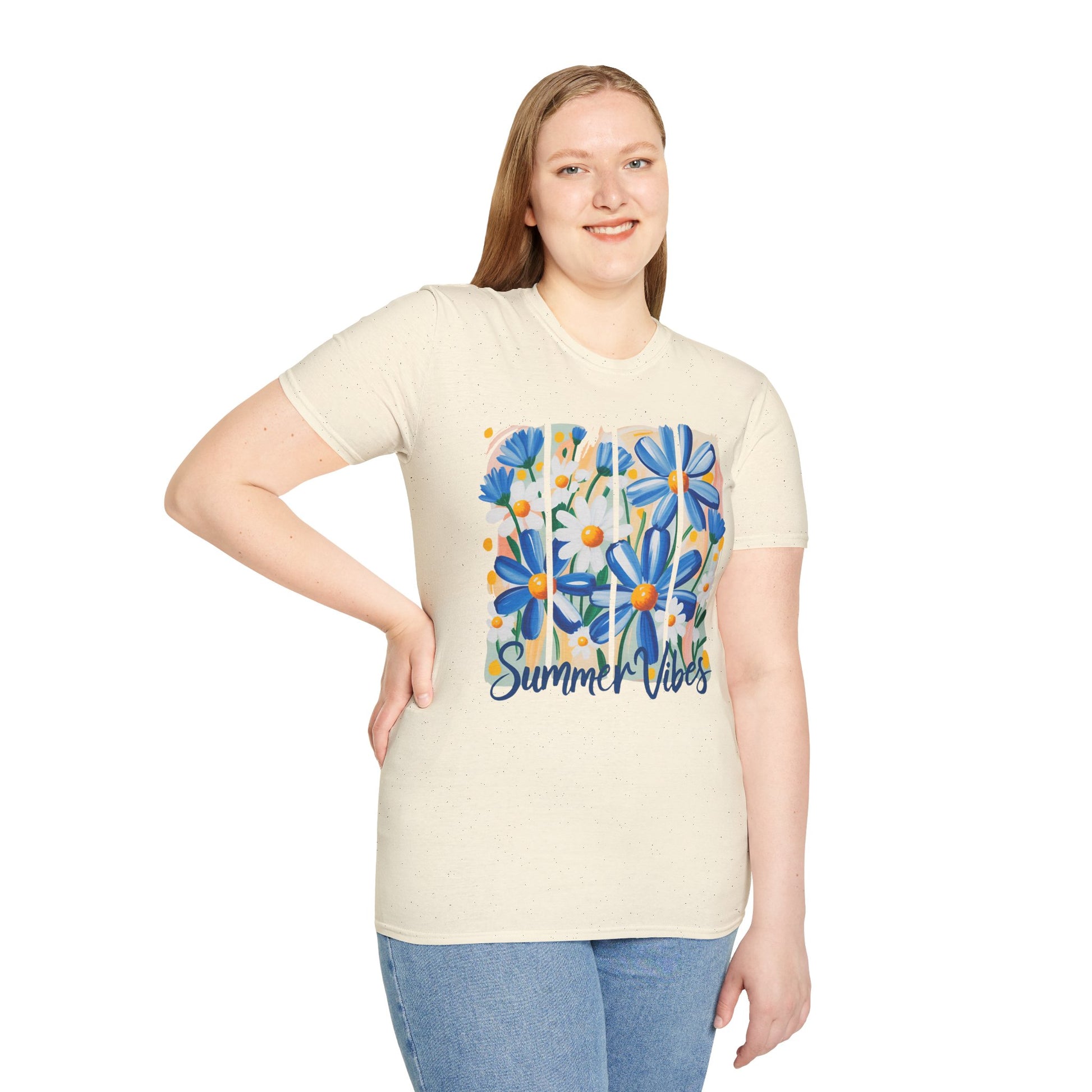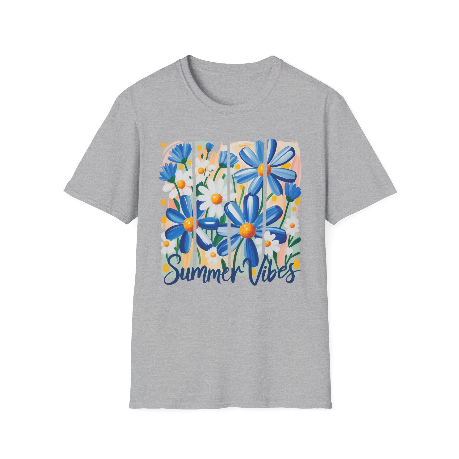 Introducing our Unisex Softstyle T-Shirt, designed to bring a burst of joy and color to your everyday wardrobe. This t-shirt embodies a fresh, laid-back vibe perfect for summer outings, beach days, or casual gatherings with friends. Featuring a vibrant floral print with the uplifting message 'Summer Vibes,' it captures the essence of relaxation and sunny days. Ideal for anyone who loves to express their cheerful personality through their clothing, this t-shirt makes a thoughtful gift for birthdays, anniversaries, or just because. Celebrate the warmth of summer, and let this t-shirt be your go-to choice for family get-togethers, picnics, or even while lounging at home.